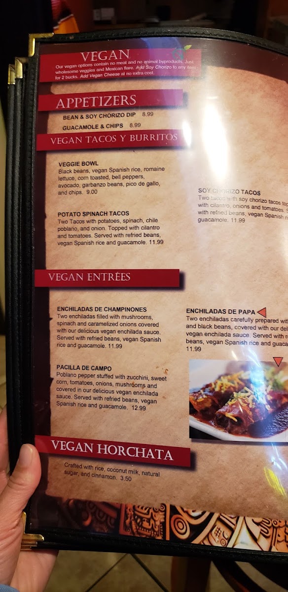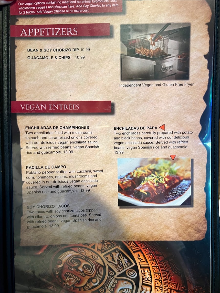 Two enchiladas carefully prepared with potato & black beans, covered with our delicious Vegan enchilada sauce.