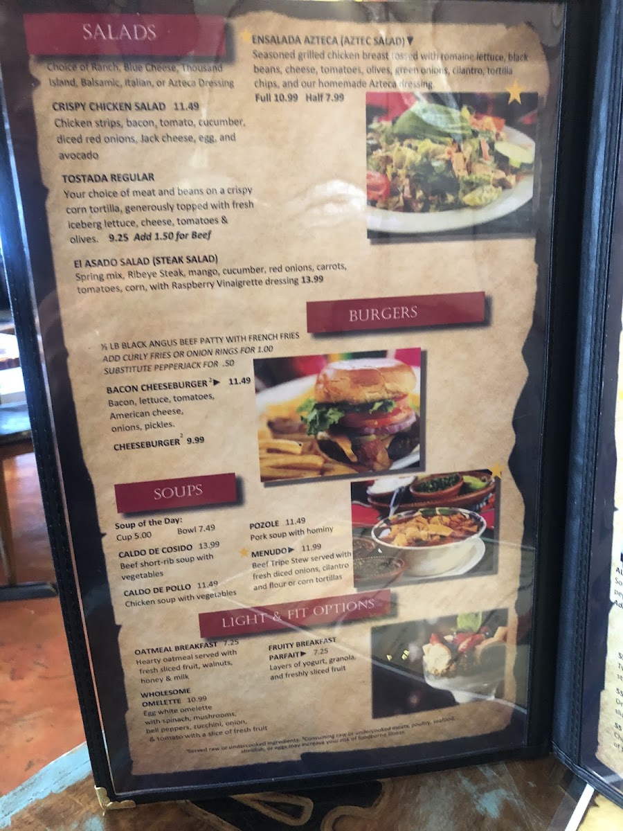 Your choice of meat, beans, rice, fajita vegetables, cheese, sour cream & guacamole. Covered with enchilada sauce & melted cheese.